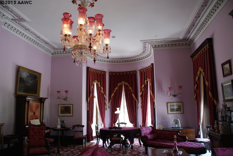 Then we were inside. It was a smaller Downton Abbey, but not by much! Sir Allan wasn’t filthy rich so no marble or really high ceilings for him. No, he had the walls painted to look like marble and, following the fashion of the day, had the door knobs lowered because people started figuring out that if you did that, it made your walls look taller and more expensive.